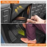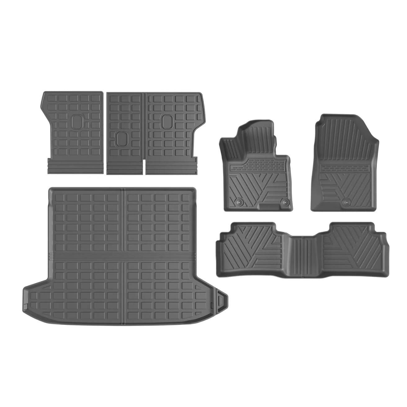 التصميم ثلاثي الأبعاد يغطي أرضية السيارة بالكامل بما في ذلك الصفوف الأمامية، الخلفية، ومنطقة التخزين الخلفية (الشنطة)، مما يوفر حماية شاملة ضد الأوساخ، السوائل، والرطوبة